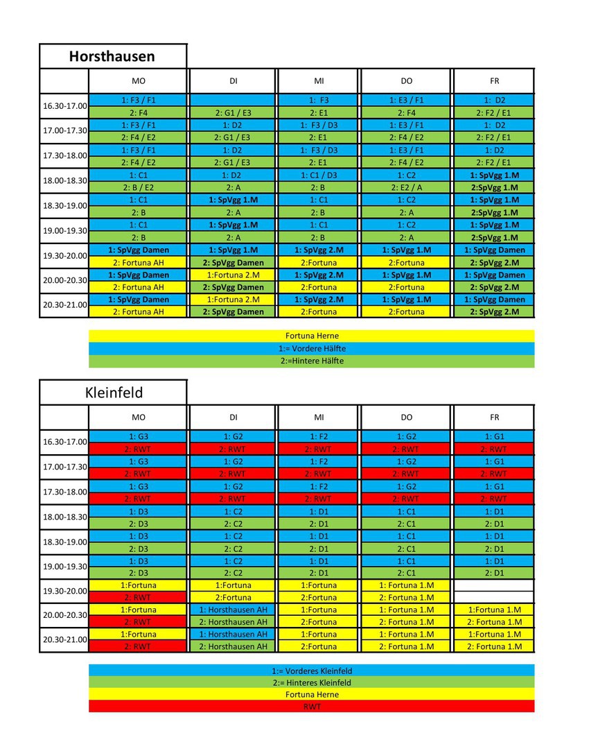 Trainingszeiten der Senioren